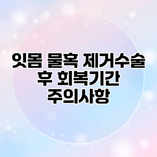 잇몸 물혹 제거수술은 많은 사람들이 겪는 치과 치료 중 하나입니다. 이 수술은 잇몸에 발생하는 물혹을 효과적으로 제거하여 잇몸 건강을 회복하는 데 중요한 역할을 합니다. 하지만 수술 후 회복 기간 동안 주의할 점이 많기 때문에, 제대로 관리하는 것이 무엇보다 중요합니다. 본 글에서는 잇몸 물혹 제거수술 후 회복기간에 필요한 주의사항과 수술 후 관리에 대한 포괄적인 정보를 제공해 드리겠습니다. 이해하기 쉽게 설명해 드릴테니, 함께 살펴보도록 하겠습니다.